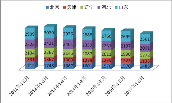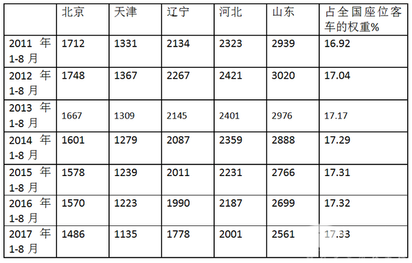 2017年1-8月环渤海区域座位客车市场特点剖析