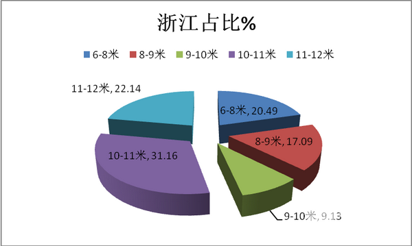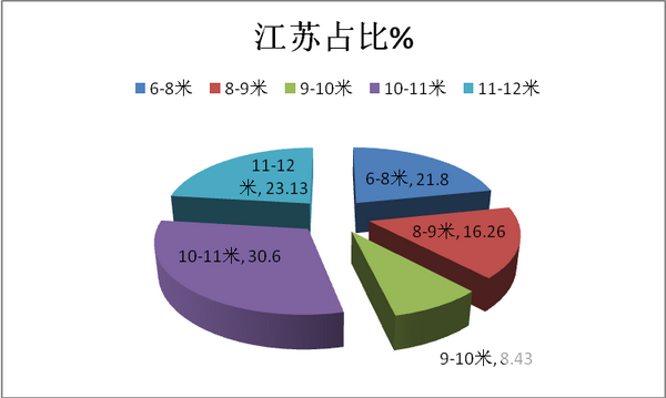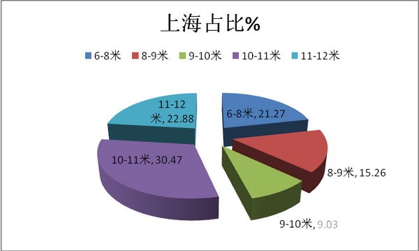 根据当地车管所数据显示,2017年1-10月,长三角市场共计购买的10-11米团体可知占据的比例达到30.9%,为长度细分市场中最大。