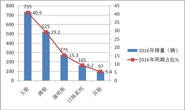 2017年1-10月华北五大区域10-11米公路客车按动力品牌销量统计(根据上牌数据统计)