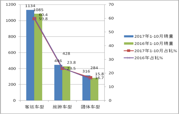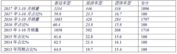 2017年1-10月华北区域10-11米公路客车市场特点解析