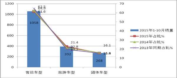 2、旅游车型近5年呈现逐年上升态势,尽管其在华北地区仍然不是主流市场。