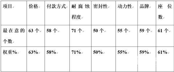 从上述抽查的样本结果得知:对团体车购买时,天津区域最看重的是耐腐蚀程度,其次是价格,再次是付款方式。这个团体客车企业在进入天津团体客车市场时,提供了一个具体的参考。