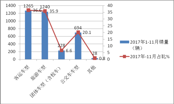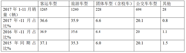 作为华南市场 的旅游大省,广西区域的特色经营模式促进了2017年1-11月旅游客车市场的发展,其具体特点有: