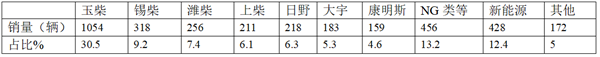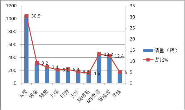 1、玉柴发动机占据了最大的市场份额,接近总体份额的三成,这与玉柴机器是广西属地企业可能有关。可见,国产发动机中,广西市场比较偏好玉柴发动机。