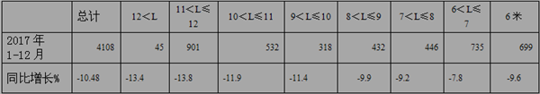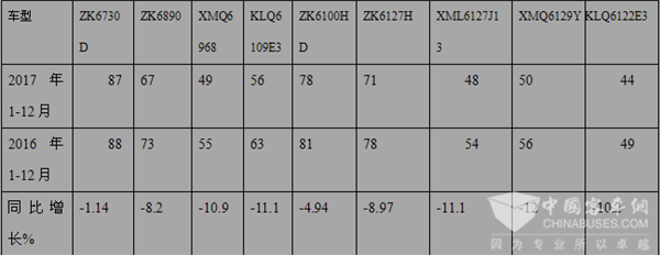 2017年1~12月份广东省公路客车各细分车型销售情况