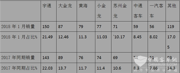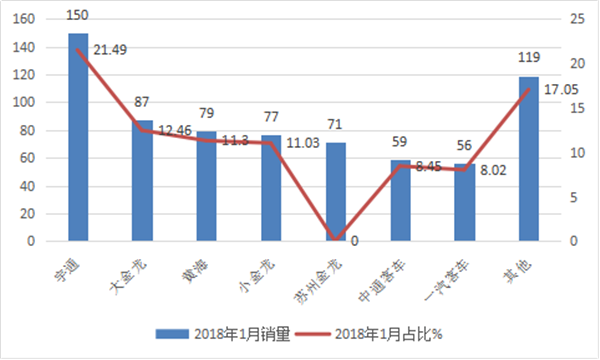 分析:东北区域2018年1月新能源公交客车市场: