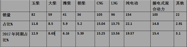 分析:2018年1月份东北区域公交市场中,传统柴油公交的比例同比均降低了,而新能源公交市场的销量比例均上升了。