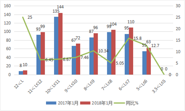 根据上牌数据,2018年1月东北区域公交按长度划分销量结构表