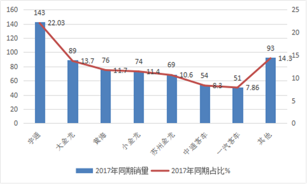 四、宇通独占鳌头,三龙二通是主流品牌,属地企业也有一定竞争优势