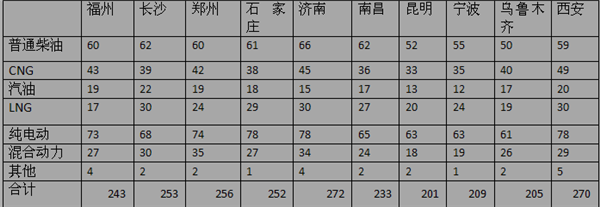根据市场调研发现,福州、长沙、郑州等十大二线城市对10-11米公交的采购方式和特征可以归纳为: