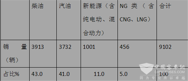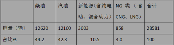 根据上牌信息统计,2018年1-3月中南区域按照发动机种类划分销量结构表