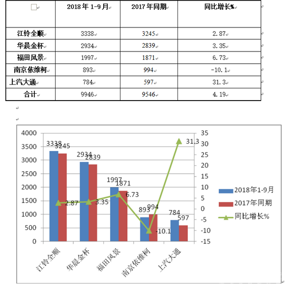 上图表显示,山东区域2018年1-9月各月轻客6月销量最大,9月销量次大,与全国销量略有差异,占据全国比例最高的月份在6月,与2017年相应各月对比,各月份占比均上升。1-9月山东轻客市场占据全国的比例同比上升了0.11个百分点,说明山东区域轻客在全国的地位在加大。