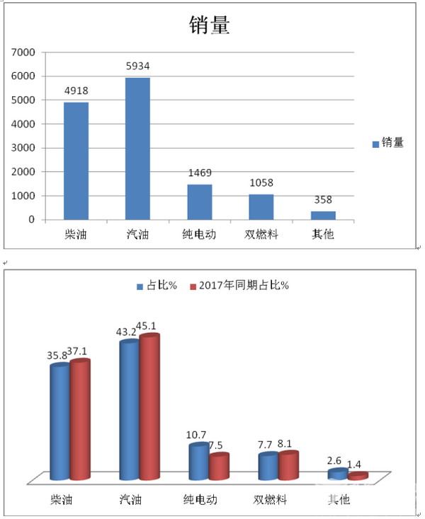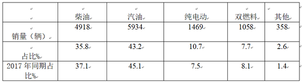 ---按燃油种类划分,对2018年1-9月山东市场轻客销量结构分析