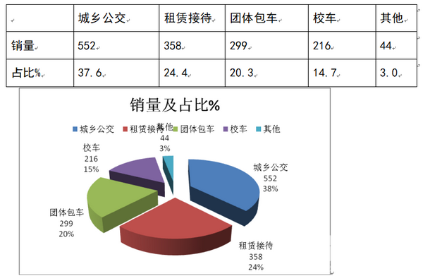 根据进一步了解,山东区域2017年1-9月销售的1469辆纯电动轻客销量中,最大的目标用途是用于城乡公交,其次是租赁接待用车,再次是团体包车,大致比例如下: