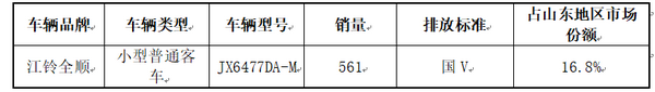 2018年1-9月,山东地区江铃全顺JX6477DA-M轻型客车共销售561辆,占江铃汽车有限公司2018年1-9月山东地区总销量的16.8%。