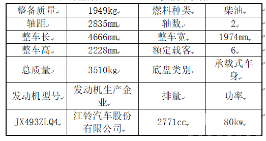 江铃全顺JX6477DA-M主要技术参数