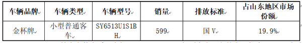 2018年1-9月,山东地区华晨金杯SY6513U1S1BH轻型客车共销售585辆,占该汽车企业2018年1-9月山东地区总销量的19.9%。
