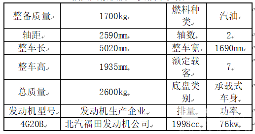 福田风景快捷主要技术参数