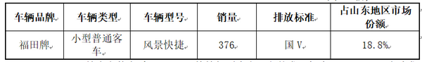 2018年1-9月,山东地区福田风景快捷轻型客车共销售376辆,占该汽车企业2018年1-9月山东地区总销量的18.8%。