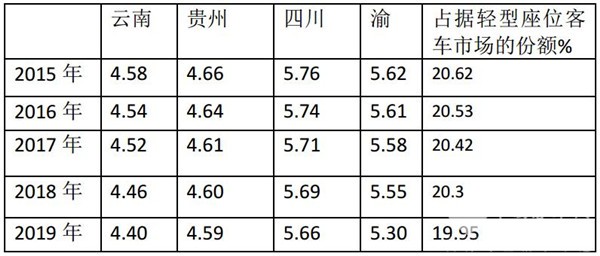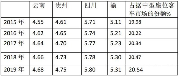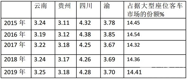 2、云贵川渝区域都是外来务工人员输出大省,客流量一直处于全国前列,而承担大量客流任务的主要交通工具依然是公路客车,尤其是每逢节假日,火车票一票难求,飞机票又很昂贵,公路客车就必然担负起长途客运的重任,而座位客车又是公路客车的主体。因此,该区域市场对座位客车的需求也必然较多。