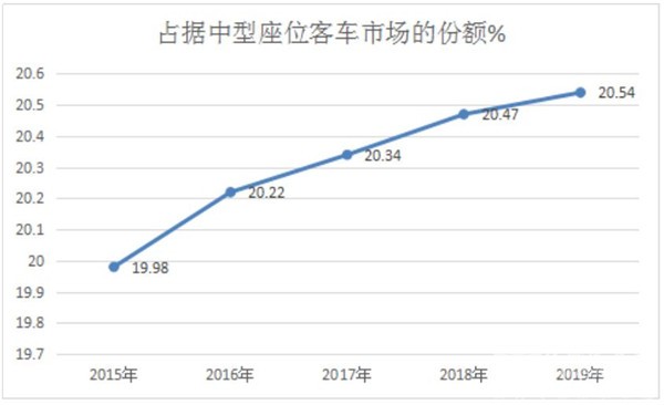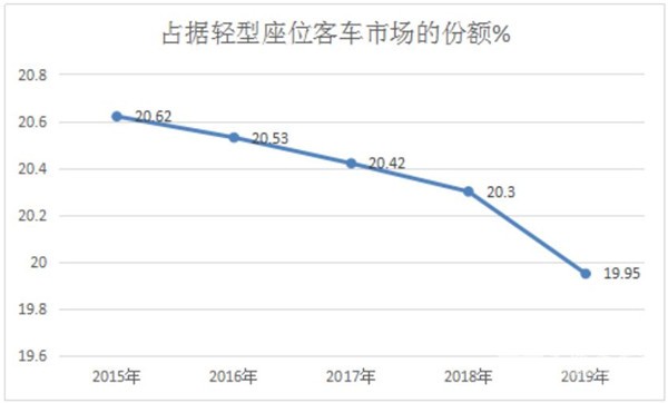 解析:近5年1-2月云、贵、川、渝区域轻型座位客车市场份额之和占据了总体轻轻型座位市场的份额一直都在20-21%之间,但随着年份推移,市场份额逐年在下降,即从2015年1-2月的20.62%逐年下降到2019年1-2月的19.95%。