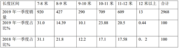 根据上牌数据,2019年一季度山东区域大中客销量结构统计: