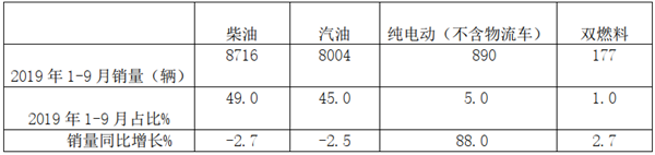 根据上牌信息统计,2019年前三季度广东区域轻客按动力种类划分,其销量结构如下表: