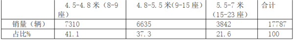 根据上牌信息,2019年前三季度广东区域轻客按长度段(座位数)销量结构: