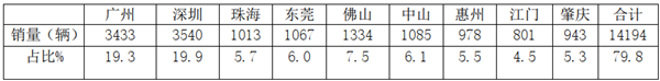 根据上牌信息,广东珠三角地区前三季度轻客销量及占比如下: