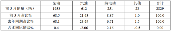上表显示,在2021年前5月广东区域公路客车市场销量结构中: