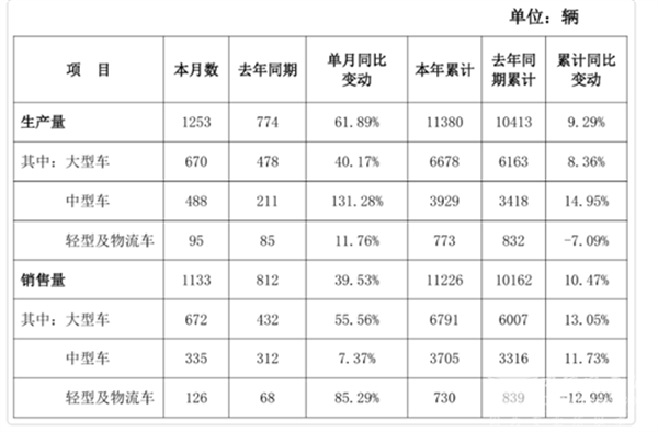 一是大型客车、轻型及物流车分别成为推动本月增长的“中坚力量”与“黑马”