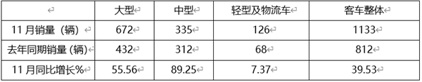 三是中通客车把握住了11月份旅游客运旺季的机会,旅团客车销量表现较好。