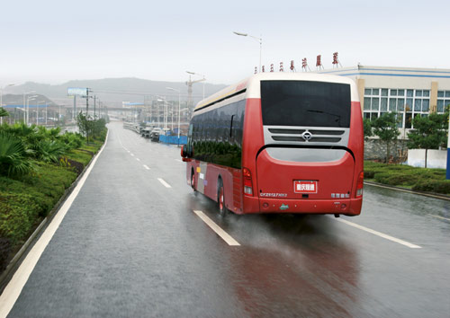 “都市”采用玉柴生产的压缩天然气(CNG)发动机,最大功率和扭矩分别达到191kW和980Nm,可满足城市中的使用。后置发动机舱盖便于打开,易于维修,且加气口位于车身侧下方,便于补给天然气。同时,压缩天然气瓶与空调设施、安全顶窗隐藏于整体式侧顶装饰盖内,不仅增添了美感,也为车厢提供了较大的承载量。此发动机采用了全新设计的电控供气装置、点火系统和发动机管理系统,解决了以往天然气发动机气缸内燃烧温度过高等问题。