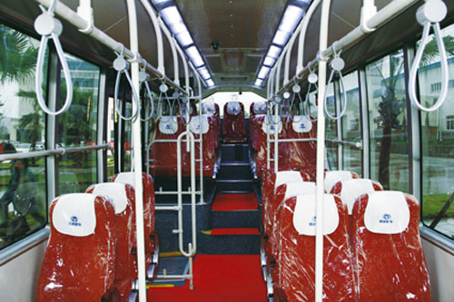 BRT的宗旨同样是提供乘客最舒适,最人性化的乘车环境。“都市”做到了这一点。运用人体工程学设计的座椅包裹性极强。它区别于一般公交车上的硬质座椅,即使乘坐都市长途旅行也不感疲劳。此外,外侧的座椅配备了可调式扶手,充满人性化。但由于宽大的座位导致过道偏窄,高峰时段的承载量是一个问题。