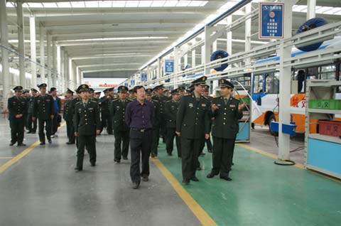2009年3月25日下午,在荥阳市领导马炳林的陪同下,郑州某高炮师与驻荥某部的首长及官兵到少林客车大客车基地进行参观。