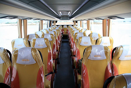 安凯牌HFF6107K05豪华客车,造型经典大气,内饰美观亮丽。该车采用进口欧Ⅳ排放发动机,动力强劲,节油环保。前2后4空气悬挂,独立前桥,前碟后鼓式制动,保证车辆行驶的稳定性和与地面的附着性。顶置式空调及安凯独有的新风换气系统,不仅能使车厢即使在摄氏三十多度的高温下保持清爽凉快,而且每小时换气120次,使车内空气保持新鲜。电动且能够除霜的倒车镜,让司机能够即时发现路面状况,避免意外危险。车内设有45个座位,EC高靠背座椅左右可动、前后可调,方便乘客坐仰休息。此外,VCD影音、倒车监视等装置一应俱全。该车的主要技术性能在国产同类客车中处于领先水平。