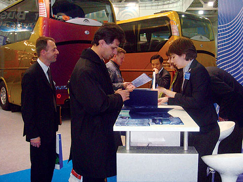 记者观察到,在参展的中国企业中,绝大部分都是俄罗斯当地代理商所为,几乎看不到中国企业代表人士的身影。只有宇通客车例外。在近1000平方米的室内展馆里,宇通客车获得俄罗斯GOST认证的6款产品悉数登场。宇通客车海外市场的相关人员也齐聚于此。