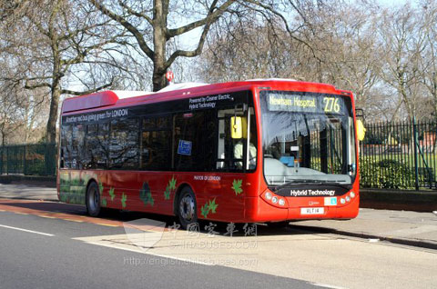 近日,伦敦公交新添了四辆Optare客车公司生产的Tempo系列混合动力单层客车。该车安装了通用-艾里逊EP混合动力系统,采用了“双模式”并联式混合动力技术,由电控柴油机和能量储备系统直接为客车提供动力来源。客车启动时,启动电动机将从客车顶部安装的电池中获取动力来源。当客车时速超过一定数值后,客车上安装的340马力的柴油机进入工作状态,为客车提供动力,并为电池储备能量。