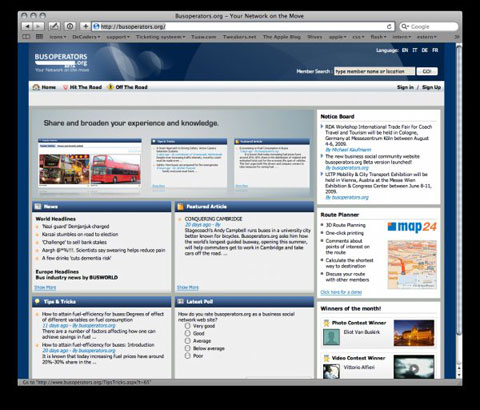 欧洲客车运营商网上商务社区Busoperators.org作为目前欧洲客车界独有的网上商业平台,将为整个欧洲客车工业领域内的职业人士提供一条建立相互交流和合作的新途径。