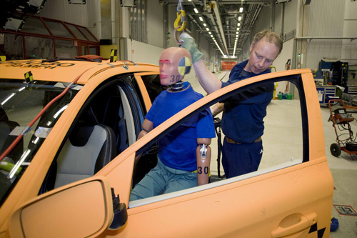 在汽车安全性的研究和开发工作中都需要用到碰撞测试假人,安全专家们据此了解汽车碰撞会对人体产生哪些影响。在沃尔沃(Volvo)汽车安全中心里有100多个用于碰撞测试的假人,这些假人单个成本可高达150万瑞典克朗(相当于140万人民币),他们为未来汽车安全性的研究做着不可估量的贡献。