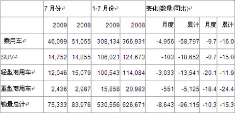 2009年7月份澳大利亚汽车销量统计