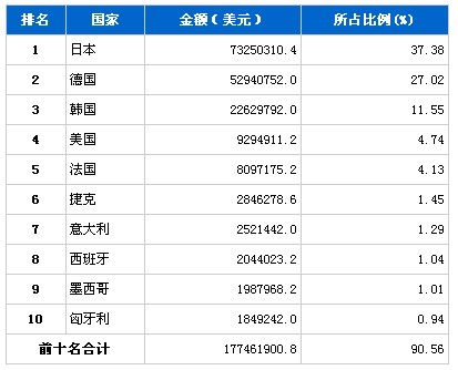 5月汽车零部件产品分国别进口金额排行榜