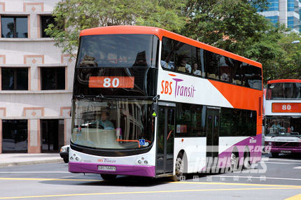 中国客车英文网【www.chinabuses.org】:继2009年购买150台,2010年购买300台沃尔沃B9TL双层大巴,新加坡SBS运输公司近日又采购了550台B9TL双层大巴,总价值2亿美元。这批客车采用了沃尔沃欧5发动机,怀特客车铝制车身。目前,新加坡还未实行欧5排放标准。