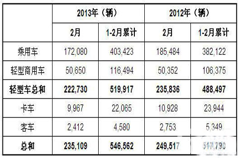 2013年2月巴西各类新车注册量统计