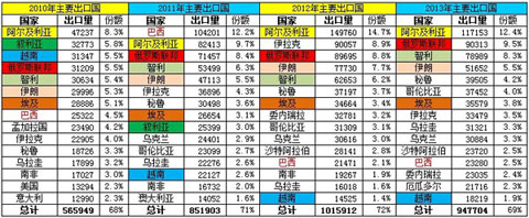 巴西在11年全年出口10.4万台,但13年全年出口2.3万台,而智利和秘鲁市场的出口表现较强。阿尔及利亚市场相对12年也是表现较弱。