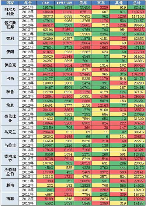亚洲市场的表现也受到两伊的影响而西亚市场不稳定,虽然我们投入巨大的金钱在伊拉克等,但西亚车市一般。而伊朗、叙利亚也指不上,都不安全。东亚的出口也较差。我们家门口的市场并未有效的把控。相对说南亚车市还是不错的。