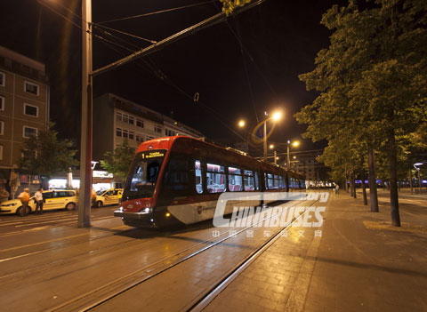 Tramino客车配备五台90KW的异步牵引电动机和超级电容器,电容器用于储存回收的电能。