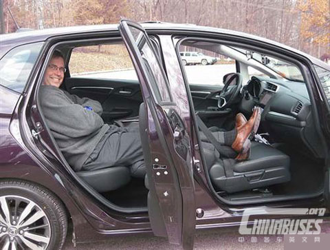 本田飞度。将前排乘客座椅折叠,可以让后排乘客腿脚放上去,更轻松惬意地休息。