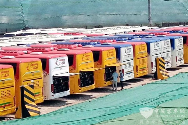 上饶客车公司海外事业部、工艺技术部驻港人员与安运公司送车队完成了车辆交验,此批155辆出口车全数移送客户方,待机装船。