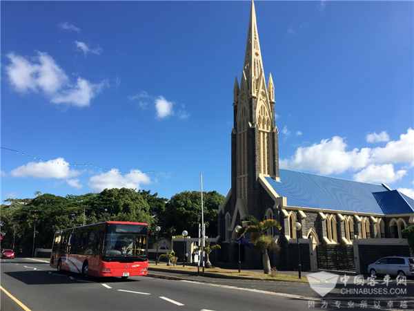 金旅12米公交驶过著名的毛里求斯罗斯希尔大教堂